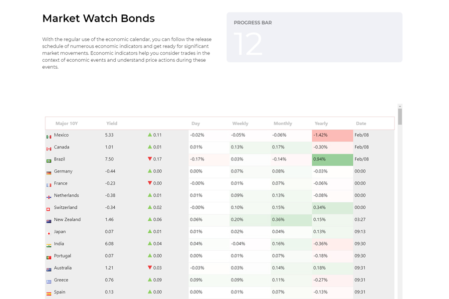 O Market Watch será a sua janela para o mundo comercial. Faça suas negociações usando o MetaTrader 5 (MT5) e escolha seus instrumentos preferidos. De pares de moedas a commodities, de ações a títulos.
